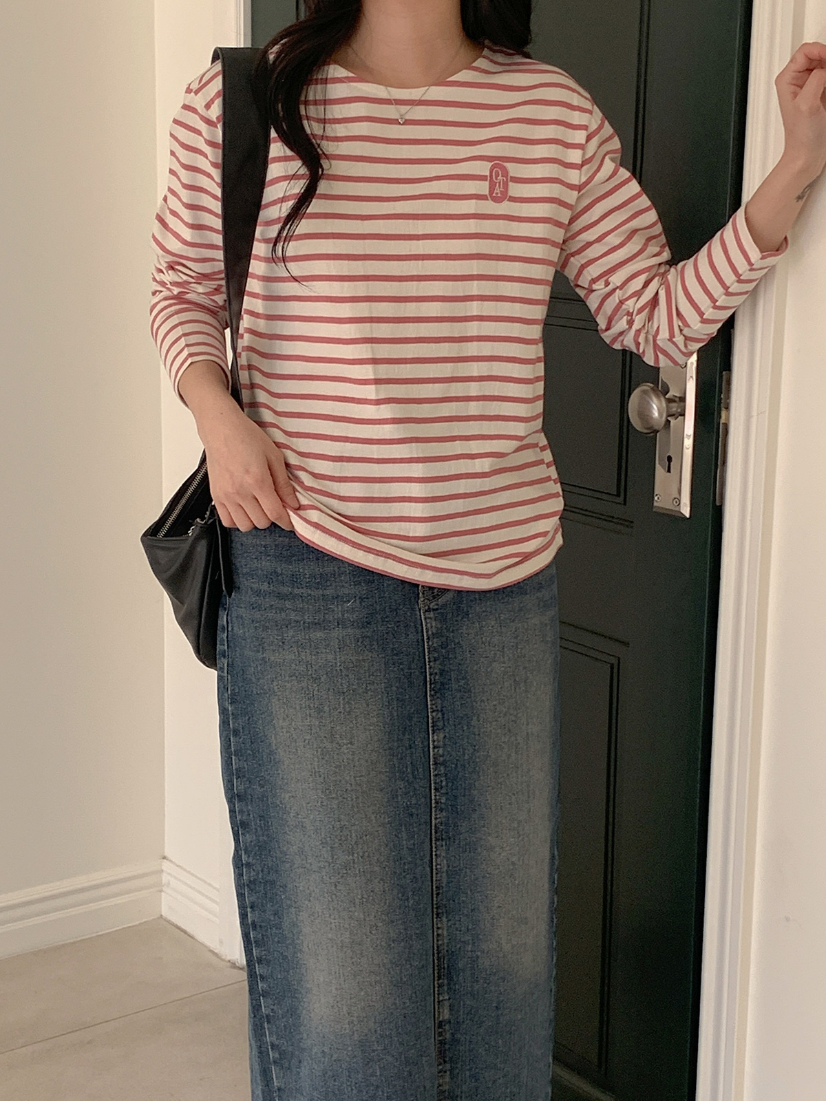스트라이프 디자인으로 캐주얼한 라운드 티셔츠
