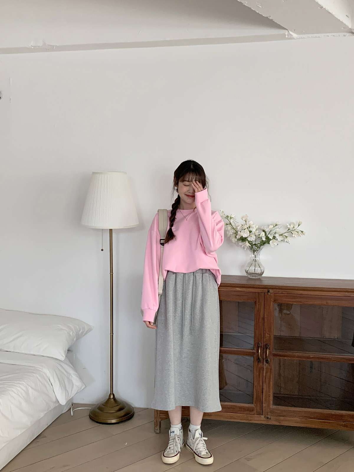 허리에 밴딩이 내장되어있어 편하게 입을 수 있는 롱 스커트 추천해드려요~!